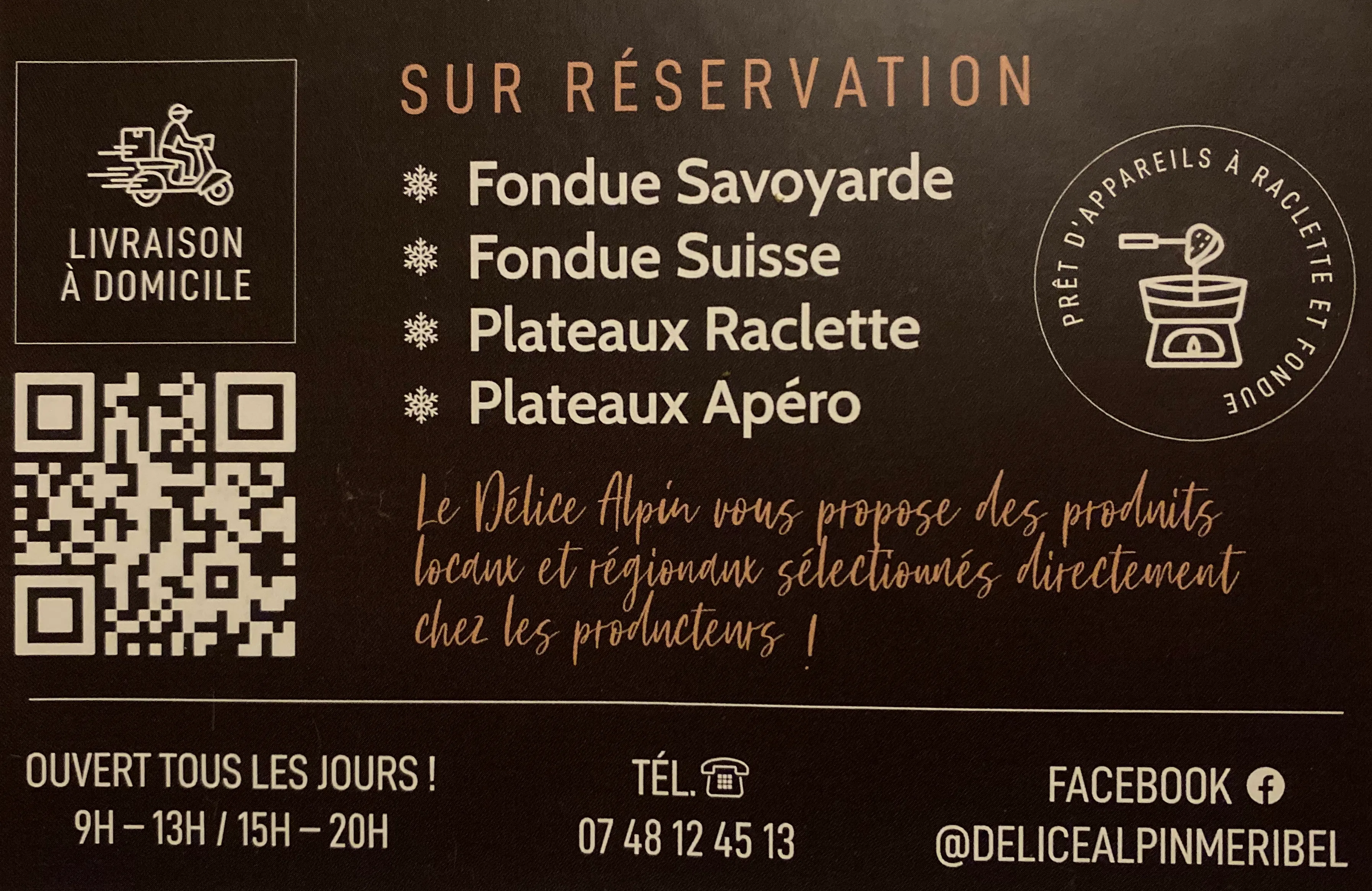 Delice Alpin vous propose aussi en livraison des fondues savoyardes, fondues suisses, plateaux raclette et plateaux apéro... pensez à resèrvé 8h à l'avance